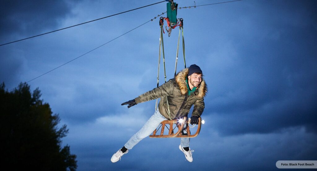 Seid ihr schon mal mit einem Schlitten geflogen? Nein, dann wird es Zeit. Gleitet mit einem beleuchtet Schlitten über den See, bastelt in der Kreativ-Werkstatt oder hüpft in den eiskalten See.